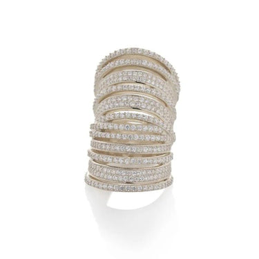 Sparkling bands of pave cubic zirconia arranged in an entwined pattern for a glamorous look.