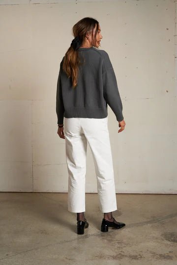 no wardrobe is complete without a staple knit. we sourced the cleanest cotton yarn and fit the best boxy wear-everywhere sweater. you’re going to love it. imported.