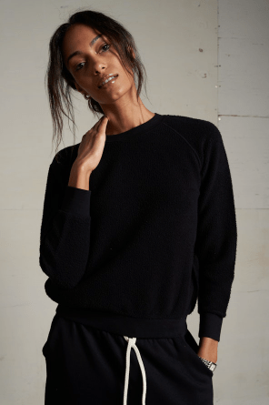 Perfect White Tee Ziggy Reverse Fleece Shrunken Sweater in True Black