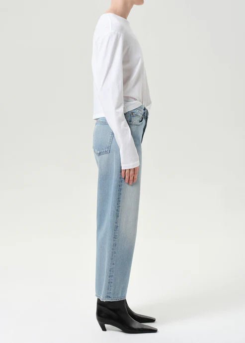 The Arc Jean features a subtle bow-leg silhouette with an easy, relaxed top block—offering a directional shape that feels effortlessly cool. Crafted from non-stretch cotton denim in a medium worn-in indigo, this fit is designed for all-day wearability with a soft hand feel. Perfectly paired with boots, the Arc is a go-to for any day and elevated layering.