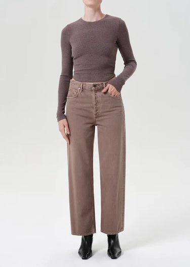 AGOLDE’s Ren Jean offers an elevated take on the classic wide-leg silhouette. Made from 100% rigid, non-stretch regenerative cotton, these high-rise jeans feature a rich dusty rose tone with subtle marbling. The cropped wide legs create a relaxed yet flattering fit, while the heavyweight denim ensures all-day comfort. Pair with neutral tones or a crisp white top for a polished look.