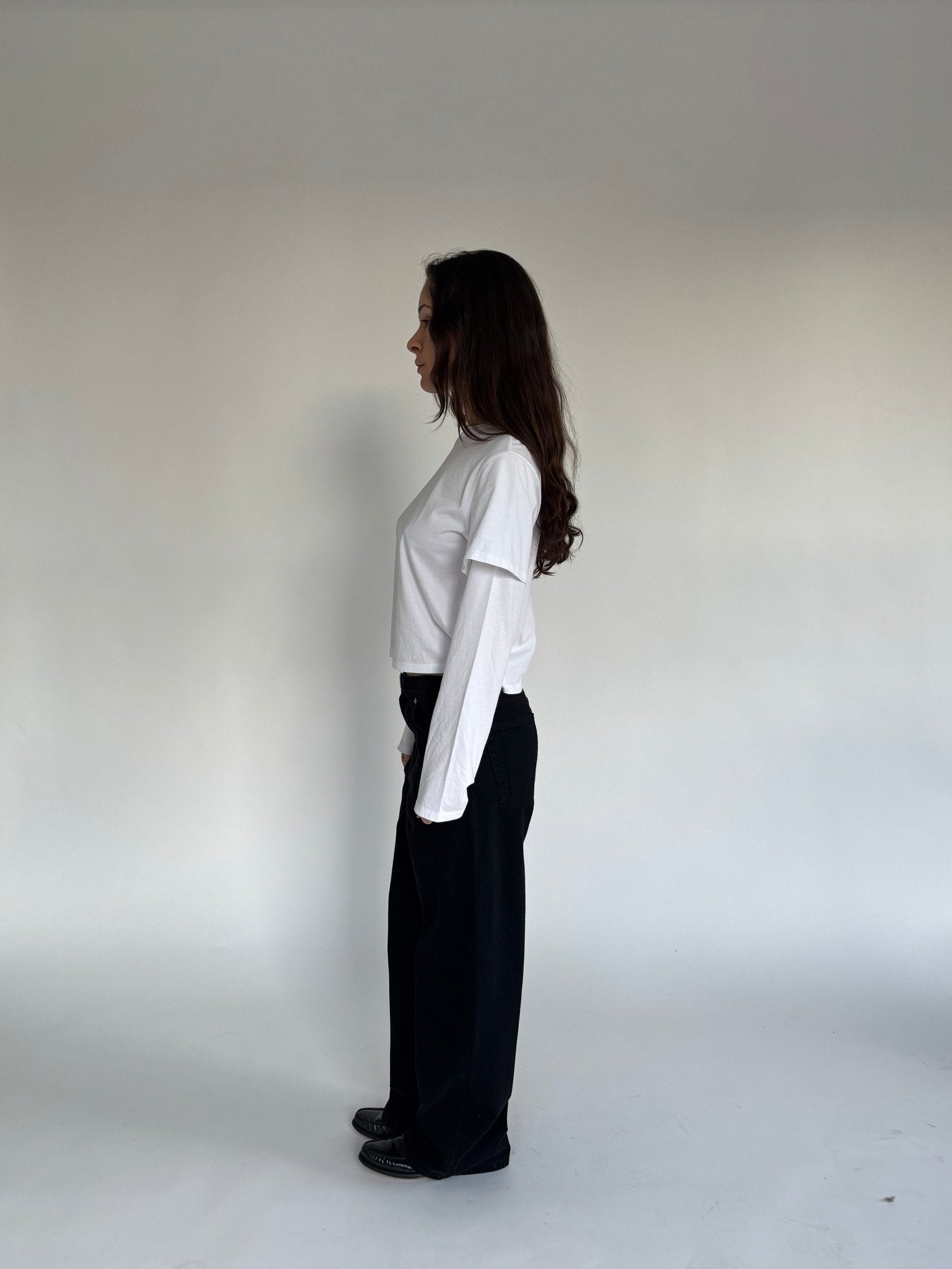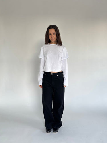 The Buckle Jean is a relaxed leg, subtle drop-crotch jean. It features our custom chrome buckle hardware and adjustable waistband side fasteners, allowing it to be worn as both a mid or low-rise jean.