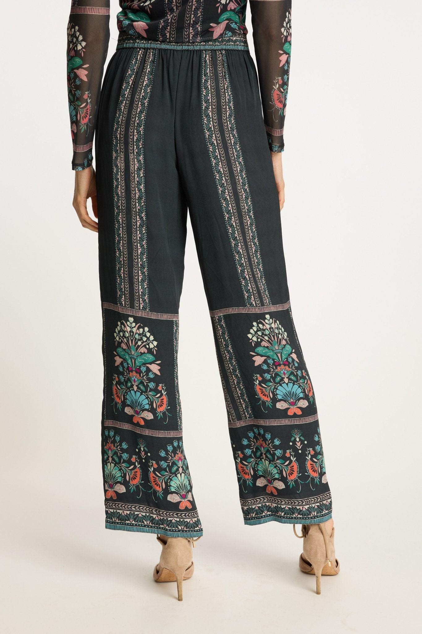 Designed for effortless comfort and style, these wide-leg trousers offer a relaxed, flattering fit with a painterly balance of color and form. Perfect for elevating your everyday wardrobe, the Twilight Bloom print brings a touch of vintage elegance and modern artistry to timeless fashion.