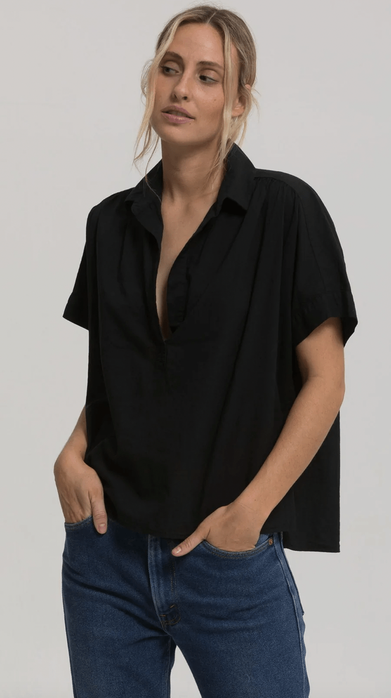 FINAL SALE. This top is as easy to wear as a classic tee. This relaxed style features a slightly dropped sleeve, placket and collar.