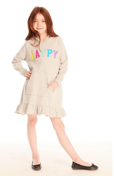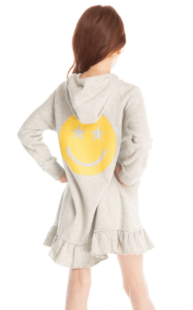 Chaser Kids Glitter Smiley Dress in Heather Grey