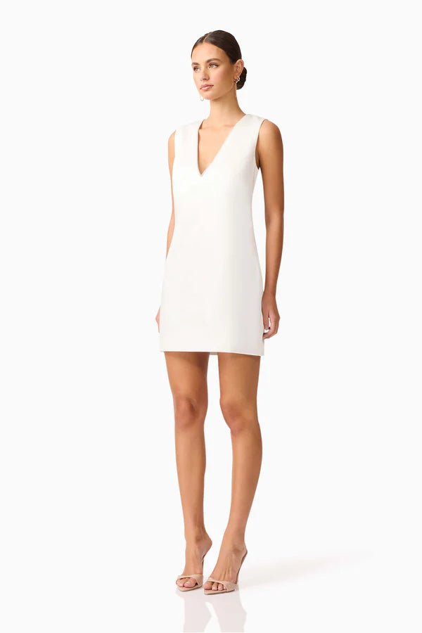 A centre back invisible zipper ensures a seamless fit, while the mini length balances timeless structure with contemporary edge. Ideal for formal events, cocktail parties, or bridal celebrations, the Livia is a sleek statement in minimalist sophistication.