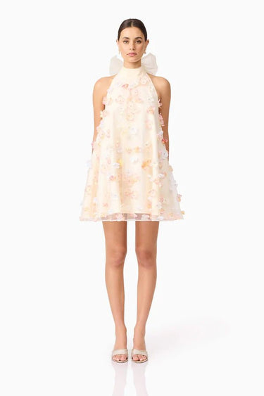 The Livia Trapeze Mini Dress in Yellow brings playful elegance to your wardrobe with its flattering halter neckline and oversized tulle bow tie to the back neck. This whimsical yet chic dress is perfect for anyone looking to add a feminine touch to their style.