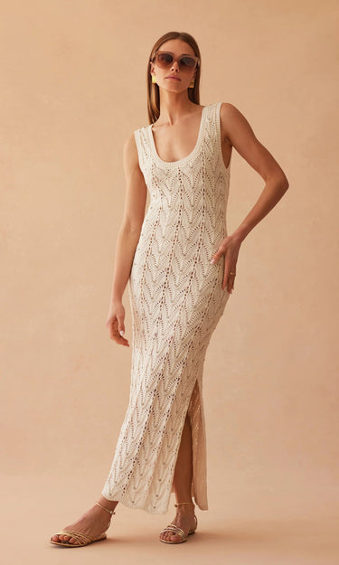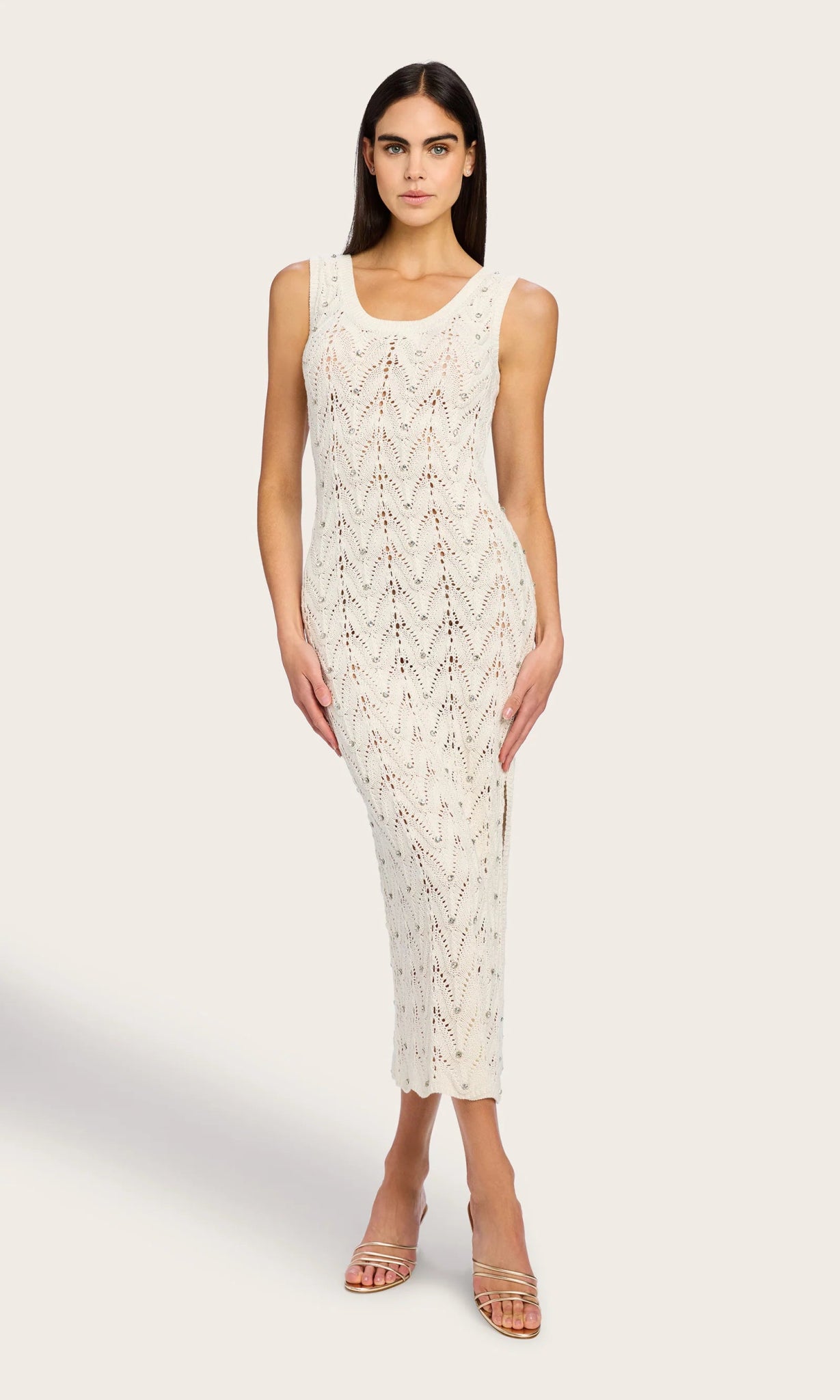 Generation Love Vincent Crystal Pointelle Knit Dress in Natural