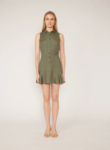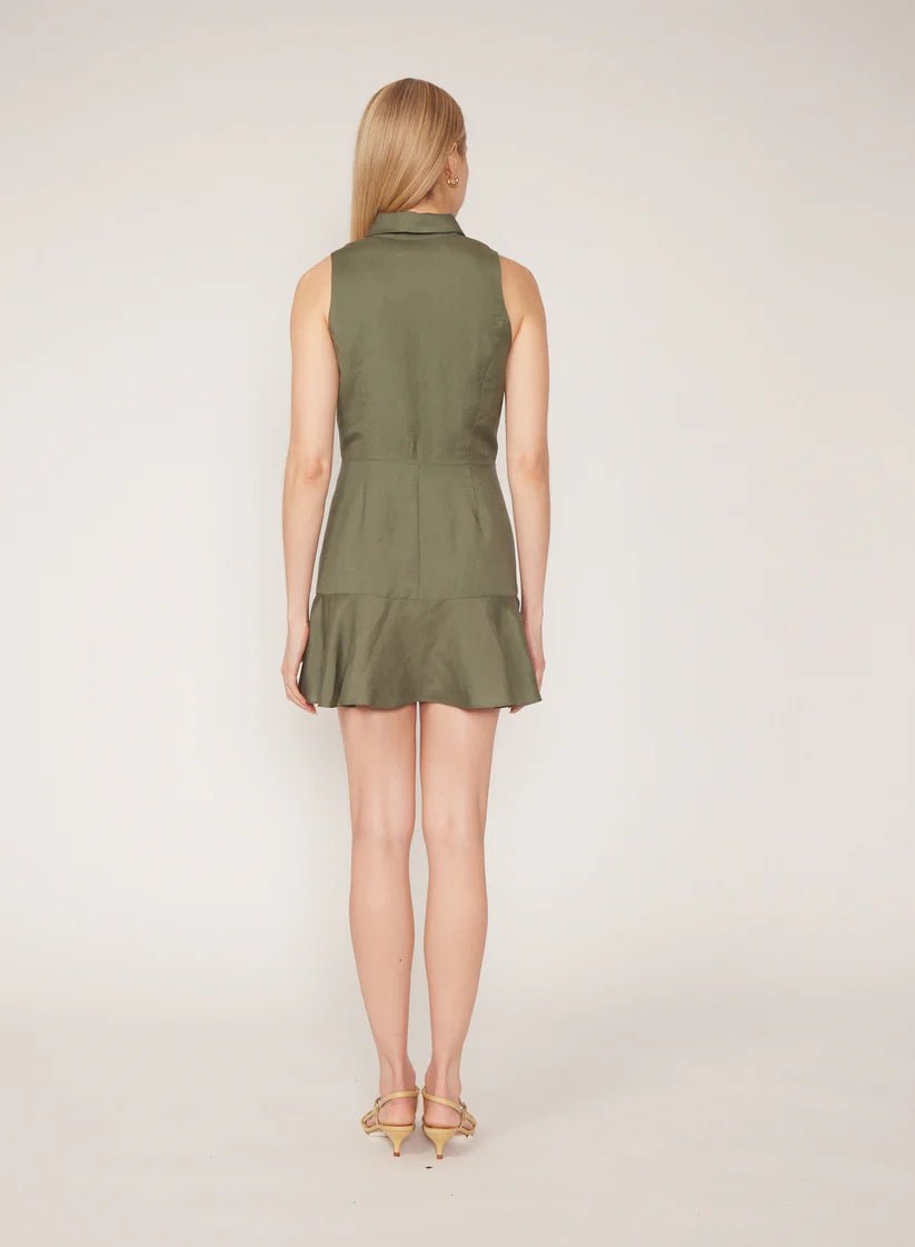 Gilner Farrar Aria Dress in Khaki Green Linen