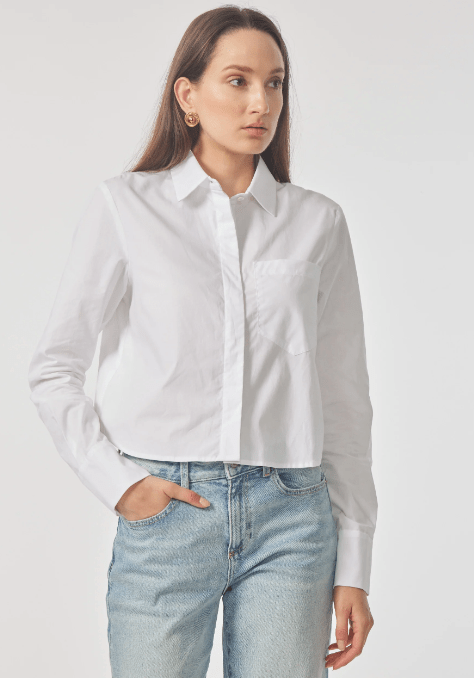 This 'Gilner Farrar' Odette Blouse features a cropped button-up oxford design in 100% white cotton. The crisp, 100% cotton material offers superior breathability and comfort, making it perfect for any occasion. The button-up style adds a touch of sophistication, while the cropped length adds a modern twist to this classic piece. Upgrade your wardrobe with this stylish and versatile blouse.