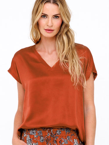We wish everything was as easy as this top...Go Silk iconic raw edge tee gets an update with a flattering vee neckline and luxe charmeuse finish. We love how it gives an instant upgrade to our usual everyday tee-and-denim uniform.