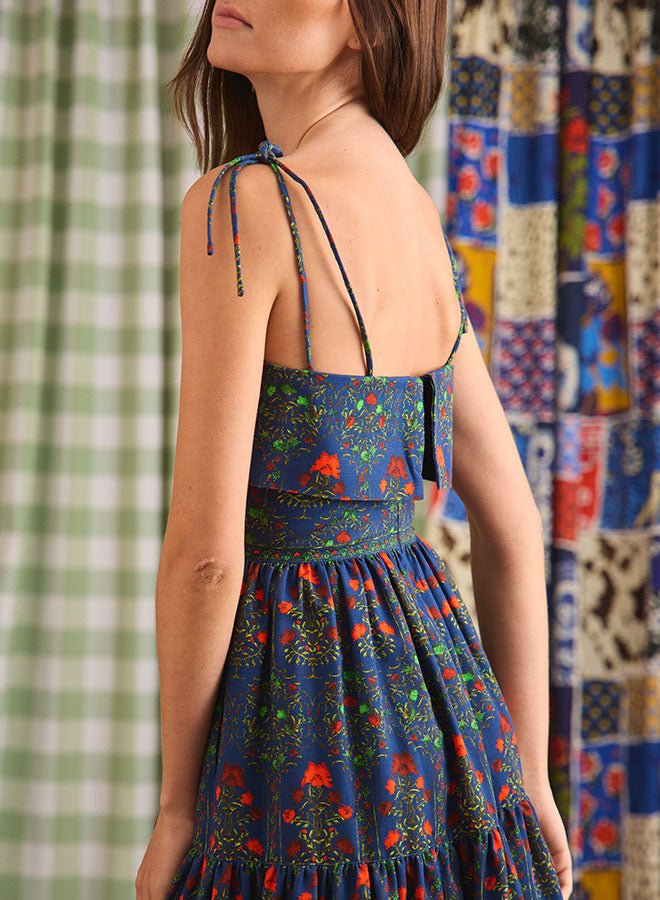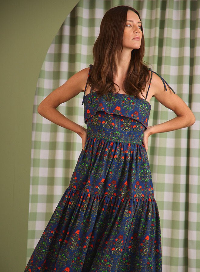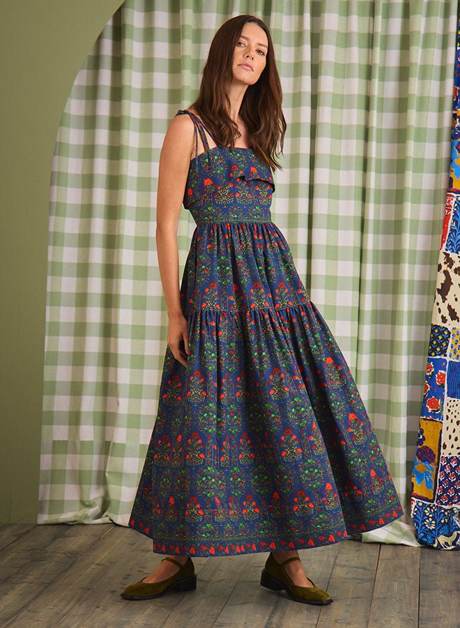 Make an entrance in the Dolly Dress, a captivating new silhouette in the HB collection. Featuring our lush Midnight Garden print, this occasion-worthy midi is a study in romance, from its delicate spaghetti straps and sculpted bodice with fold-over detail to the cinched waist that gives way to a sweeping, shirred skirt. Crafted from structured 100% cotton faille, it holds its shape while creating graceful movement with every step. Whether it’s a fall wedding, an elegant dinner, or a night you want to feel unforgettable, Dolly is your perfect plus one.