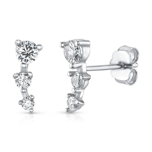 Trio CZ Climbing Stud Earrings, Silver