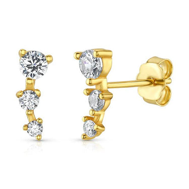 Jen Hansen Trio CZ Climbing Studs in Gold
