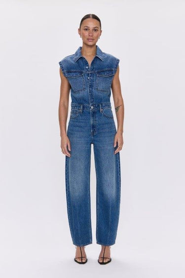 One-and-done, all-day cool. The Pistola Ace Sleeveless Barrel Leg Jumpsuit in Fairview nails that modern utility vibe with a curved, barrel-leg silhouette and a defined waist that flatters without trying too hard. The Fairview wash is a versatile medium indigo with soft fading—easy to dress up or down with Estilo staples.