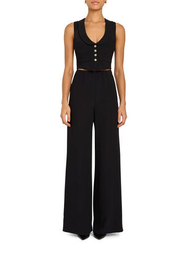 Effortless elegance meets modern edge with the Amanda Uprichard Nathan Jumpsuit in Black. This sleek one-piece silhouette flatters every frame with its tailored fit and sophisticated drape. Perfect for elevating your everyday style or making a statement at special occasions, this versatile jumpsuit transitions seamlessly from day to night. The timeless black hue pairs with everything in your closet, while the quality construction ensures you'll reach for it again and again. Dress it up with heels and jewelry or keep it casual with sneakers—this is the jumpsuit that does it all.