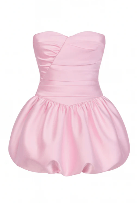 Fall in love with the Elora Sweetheart Bubble Dress — the ultimate flirty dream dress! Made from glossy satin in the prettiest blush pink, it features a sweetheart neckline and ruched bodice that hugs you just right. The puffed bubble skirt adds that extra touch of magic, making it perfect for parties, dates, or any moment you want to feel totally adorable.