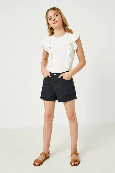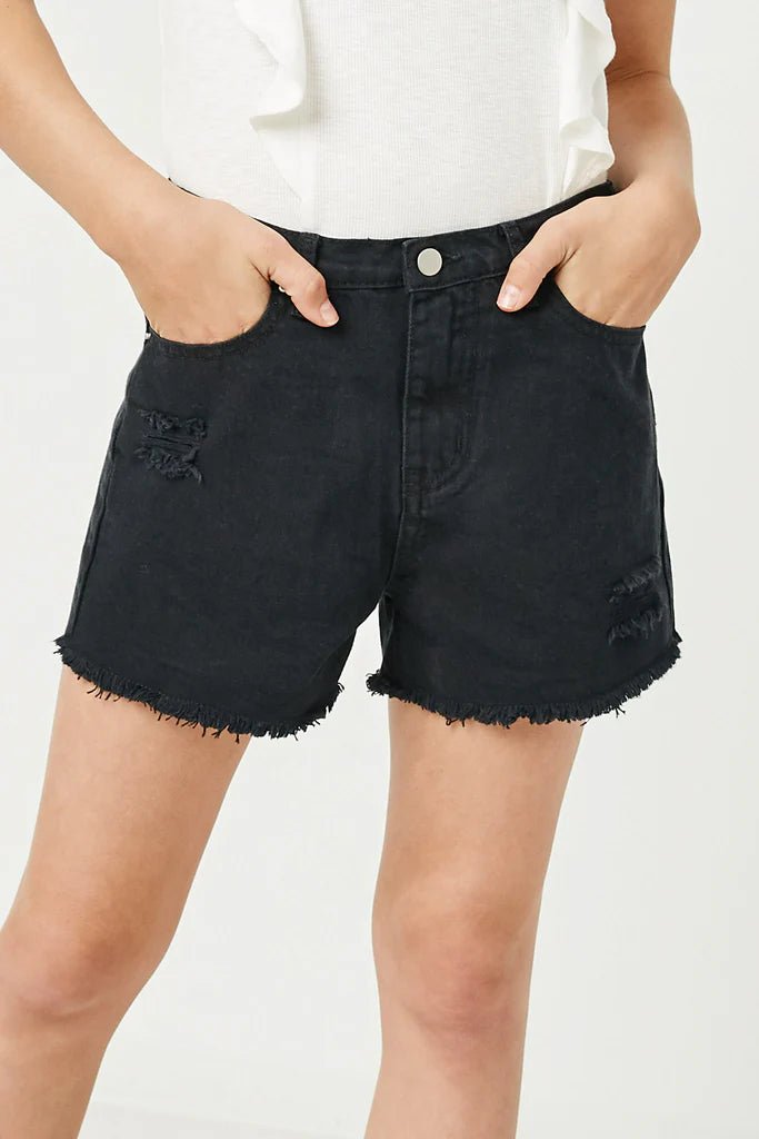 Hayden Girl Distressed Washed Color Denim Shorts in Black