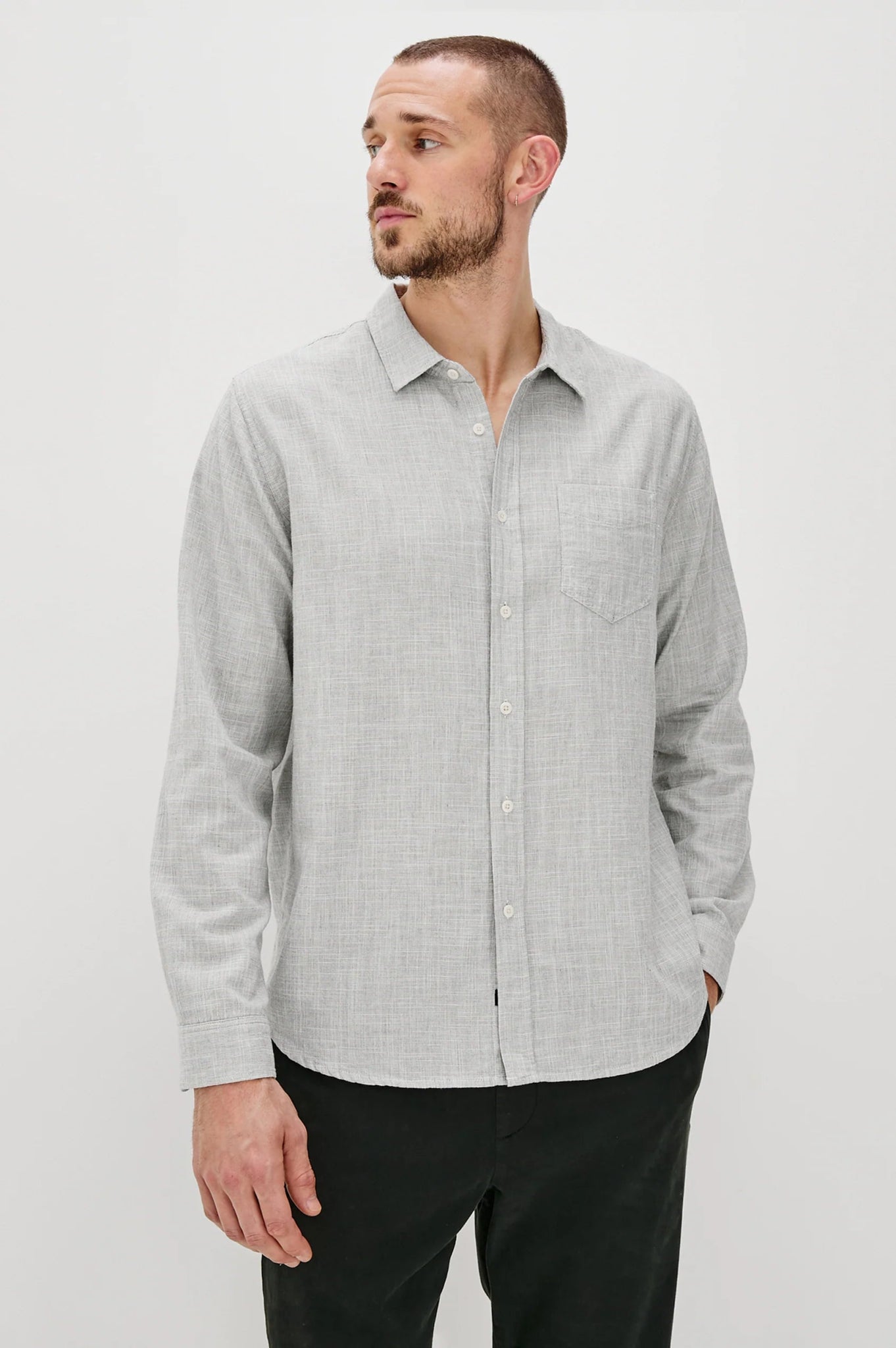 Super soft, breathable cotton fabric mixed with a relaxed body shape makes the Wyatt the perfect Southern California inspired button-down. A classic shirt featuring a single patch pocket at chest.