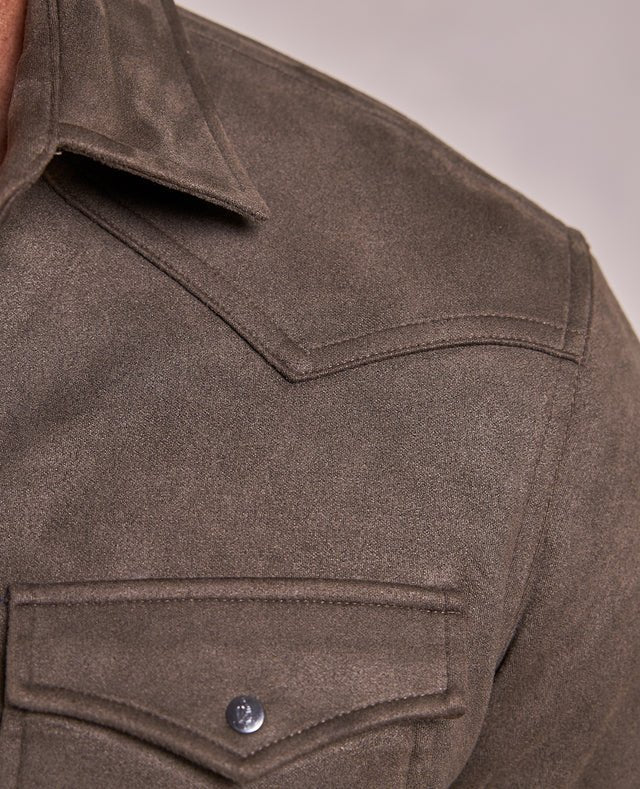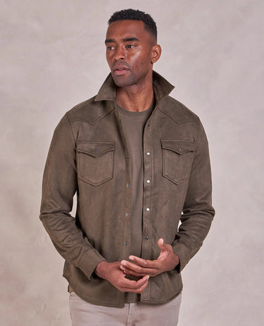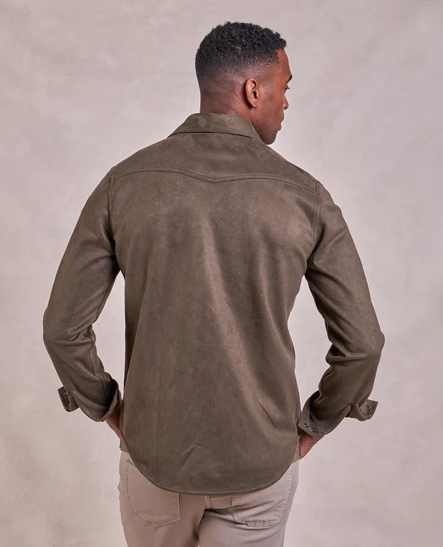Rye 51 The Wyatt Microsuede Shirt Jacket in Dark Olive