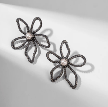 Bloom big in these oversized flower-shaped earrings that endlessly sparkle with a center faux pearl and brilliant crystals.