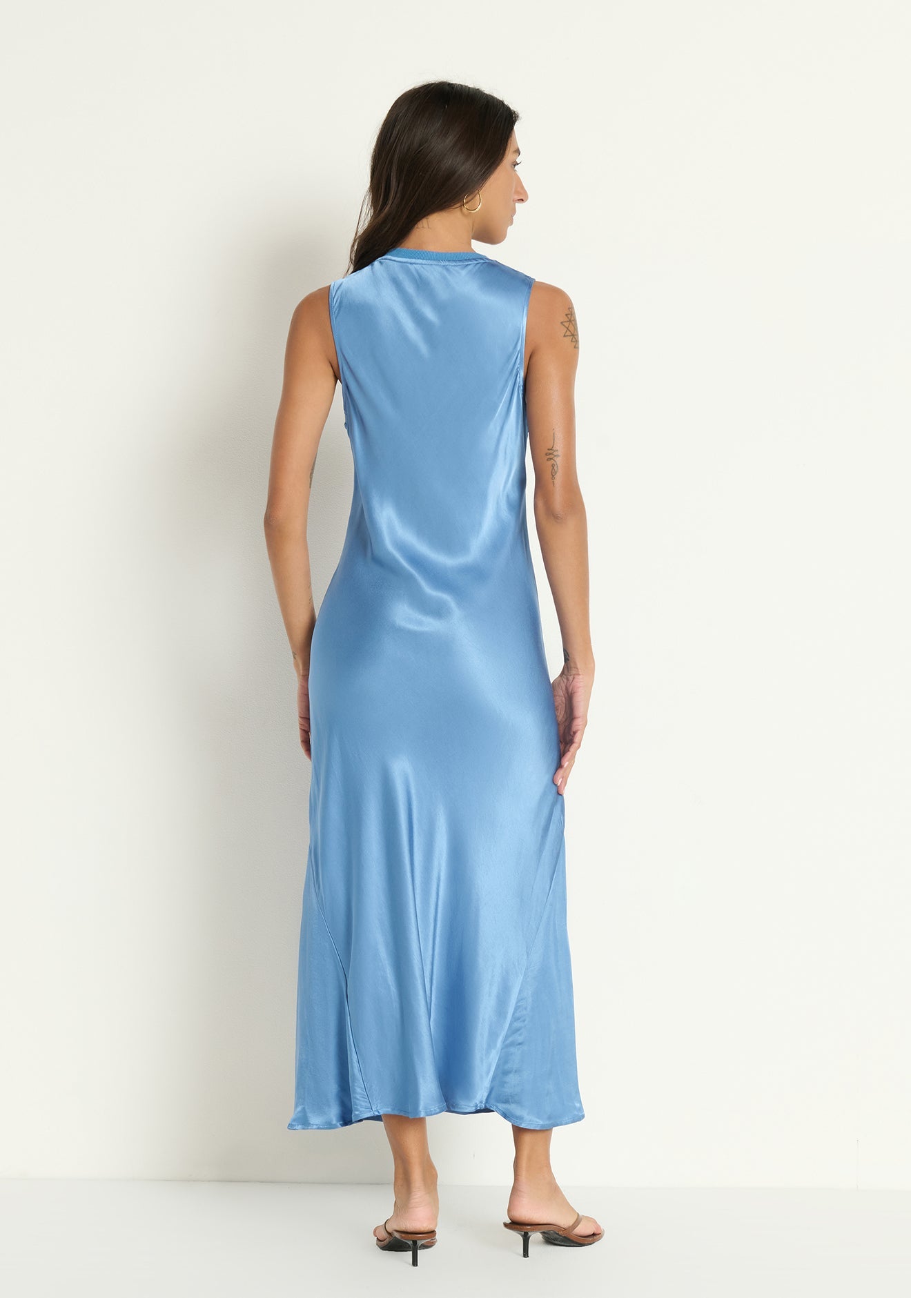 Sugar, satin, and everything nice. The Dulce dress is a go-to for weddings, wine tastings, and other classy affairs thanks to its midi length, classic tank dress silhouette, and ribbed collar.