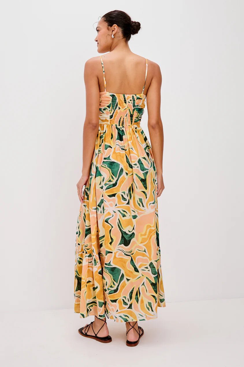 FINAL SALE. An essential maxi sundress, crafted from sunshine-ready beach cotton. The Palm features a full, tiered skirt, fitted bodice with a V-neckline and adjustable straps.