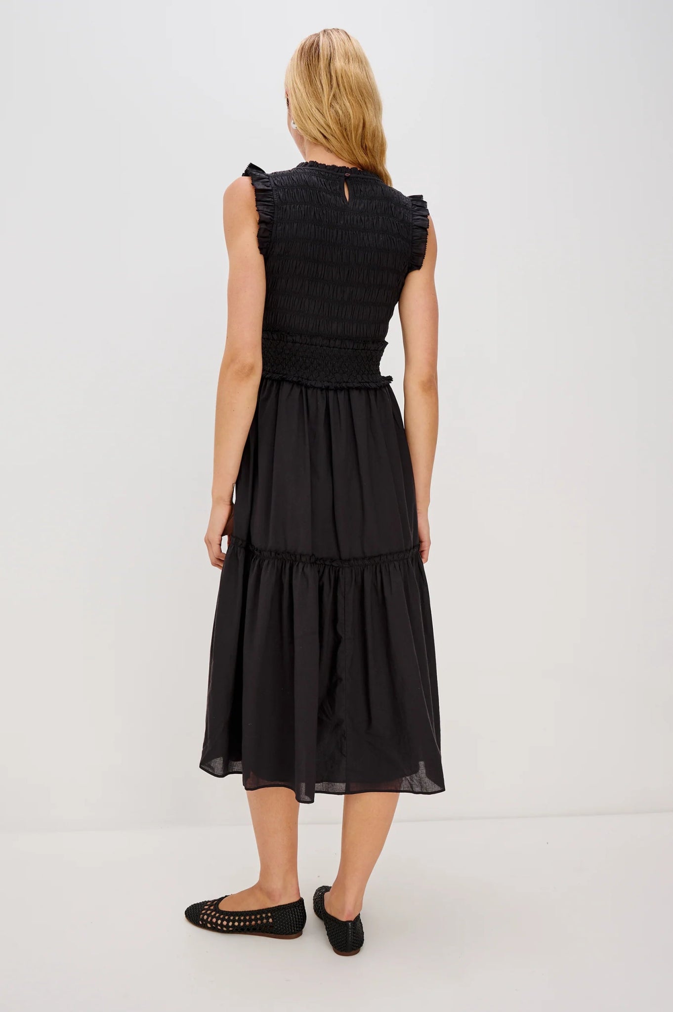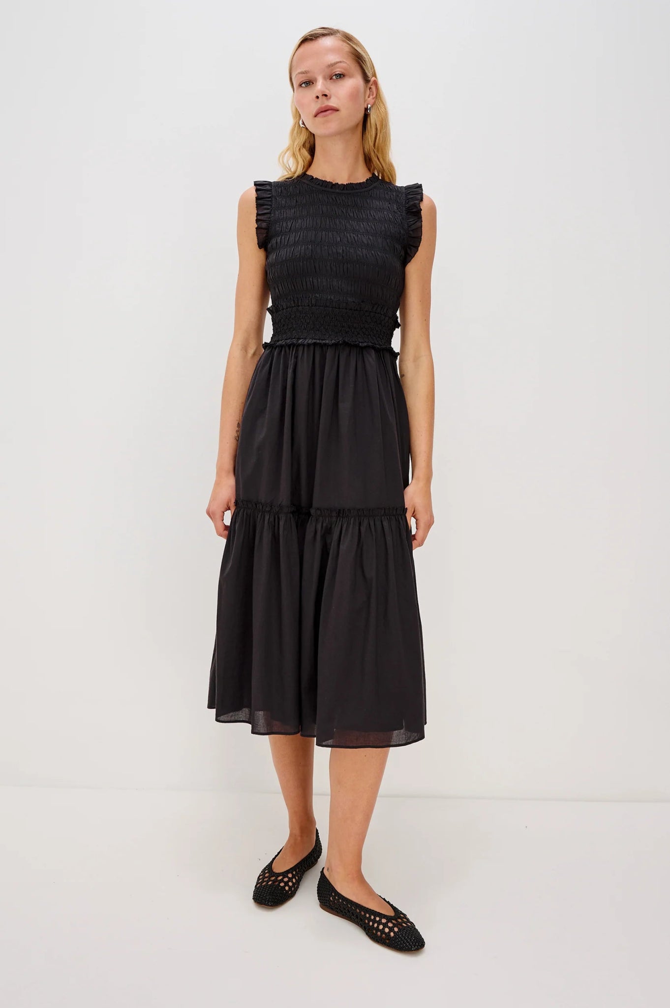 The Vivier is a maxi dress in crinkled cotton poplin with a smocked, fitted bodice and waistband that give way to a relaxed skirt with ruffled tiering.