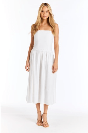 FINAL SALE. Introducing the Drew Ace Dress in Ivory, a luxurious addition to any wardrobe. Crafted with exquisite attention to detail, this dress exudes elegance and sophistication. Its timeless ivory color and flattering silhouette make it perfect for any special occasion. Elevate your style with this stunning piece.