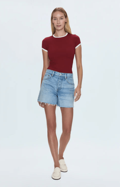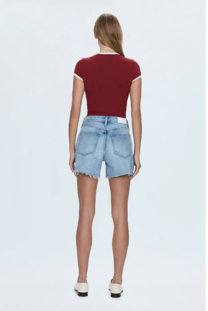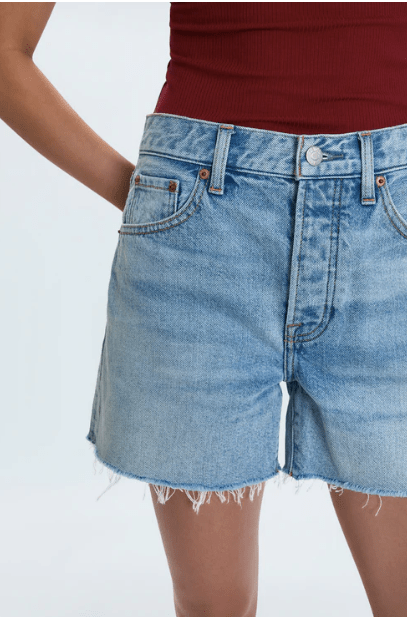 FINAL SALE. Meet the Andie: Your new favorite high-rise cut-off shorts. These rigid denim shorts offer a relaxed, yet flattering fit and a perfectly vintage feel. The light medium wash and raw hem add a touch of cool, making them perfect for any occasion.