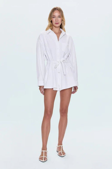 FINAL SALE. The Vance Romper offers a study in understated chic. With long sleeves and a button-down closure, it's designed with a belt to artfully cinch the waist, creating a universally appealing silhouette. The flowy leg opening drapes beautifully, lending an air of refined movement. This is the essential piece you'll reach for, whether traveling or seeking everyday sophistication.
