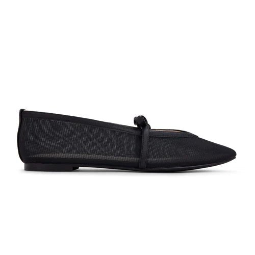 Modern minimalism meets ballet-core charm. The Savannah Flat in Black Mesh features a barely-there silhouette with soft structure, tonal trim, and a delicate bow—perfect for adding texture and polish to any look. Light on your feet, bold in attitude.