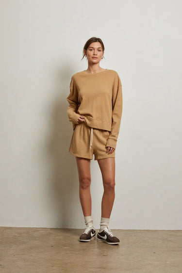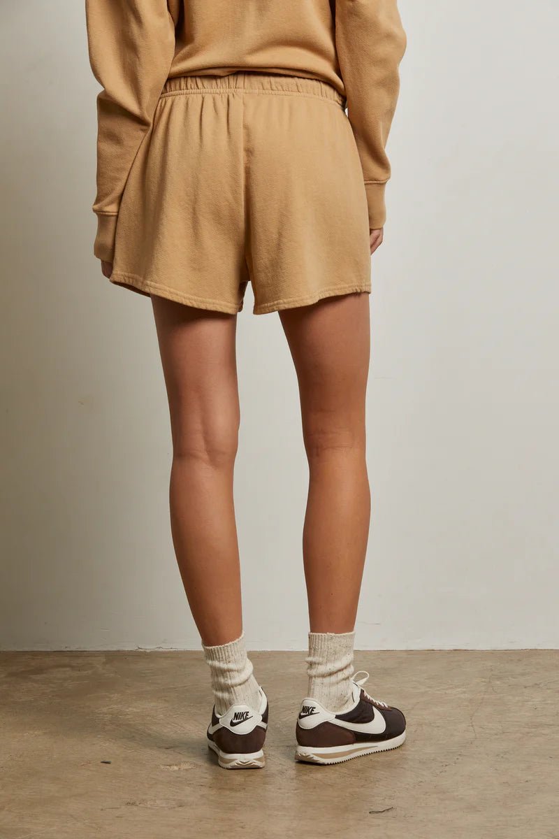 roomy, with a flexible elastic waistband and drawcord. this short is perfect on everyone. made with our signature french terry cotton, these super soft and plush lounge shorts are the bees knees of comfort wear. available in perfectly curated hues for all seasons.