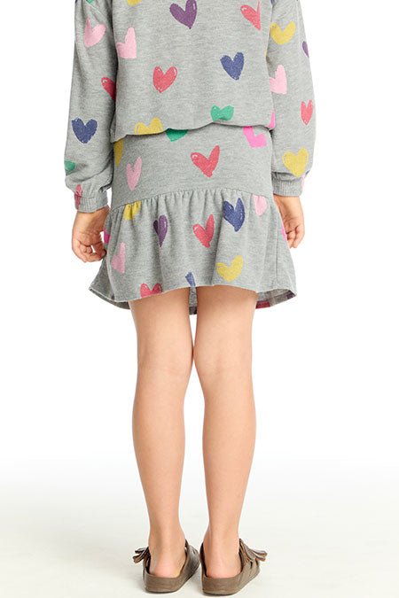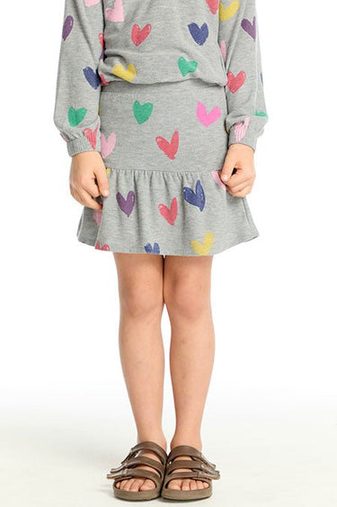 Chaser Kids Rainbow Hearts Skirt in Heather Gray