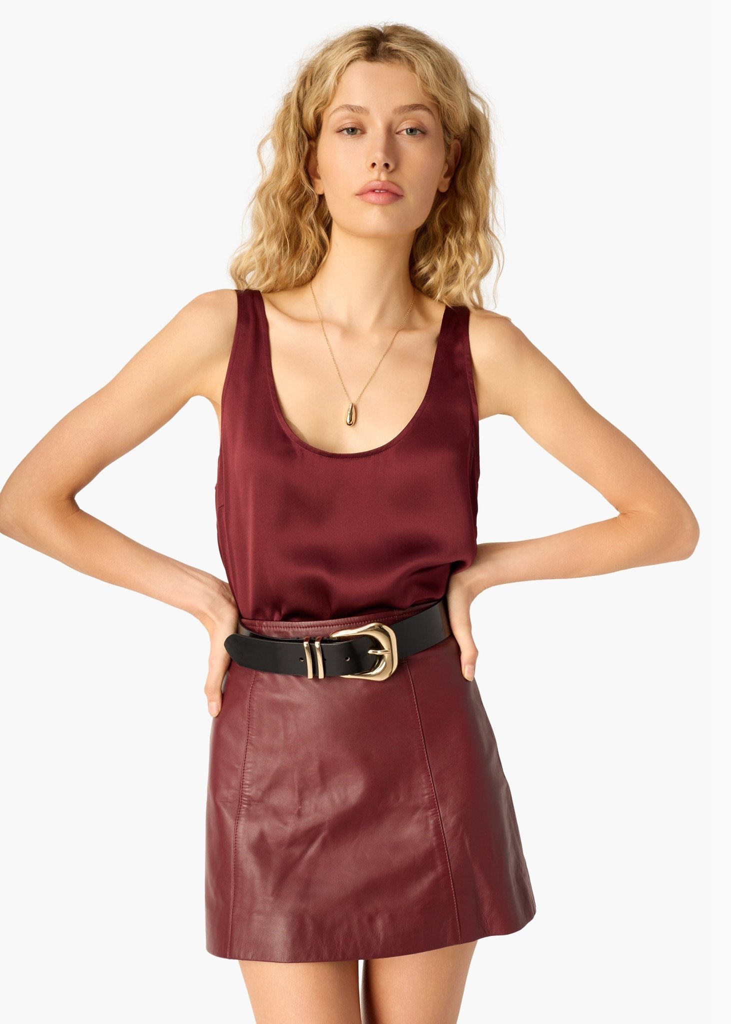 Cami NYC Cillian Genuine Leather Mini Skirt in Syrah