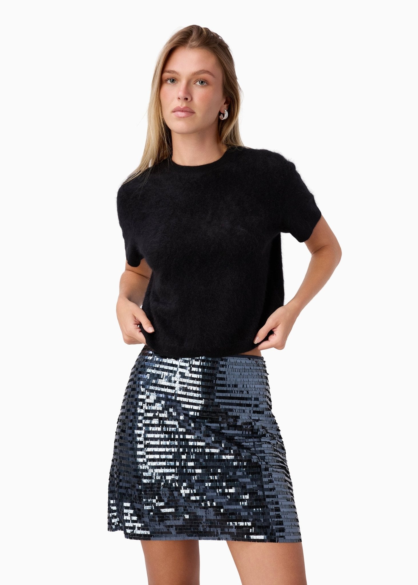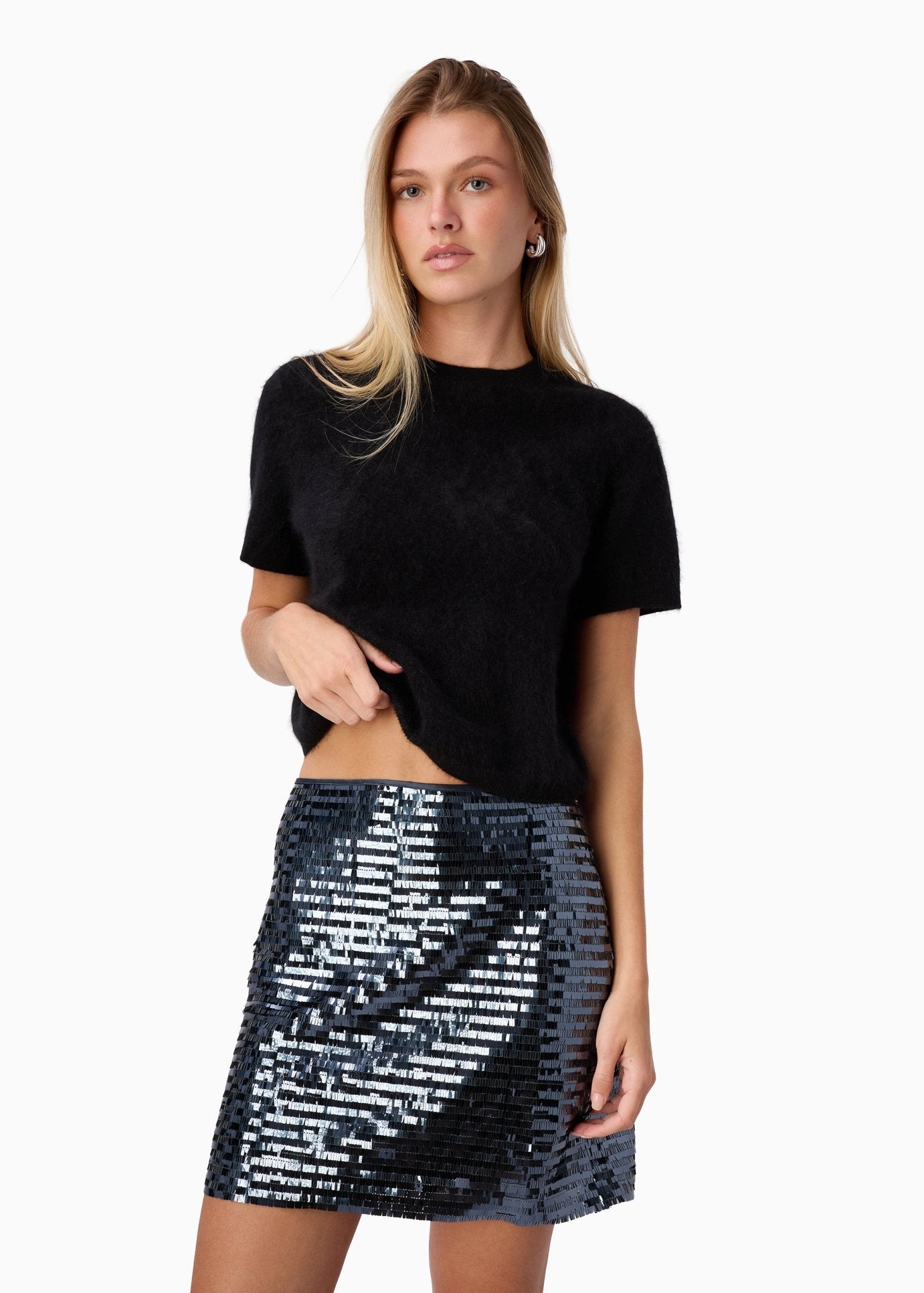 Mid rise sequin mini skirt