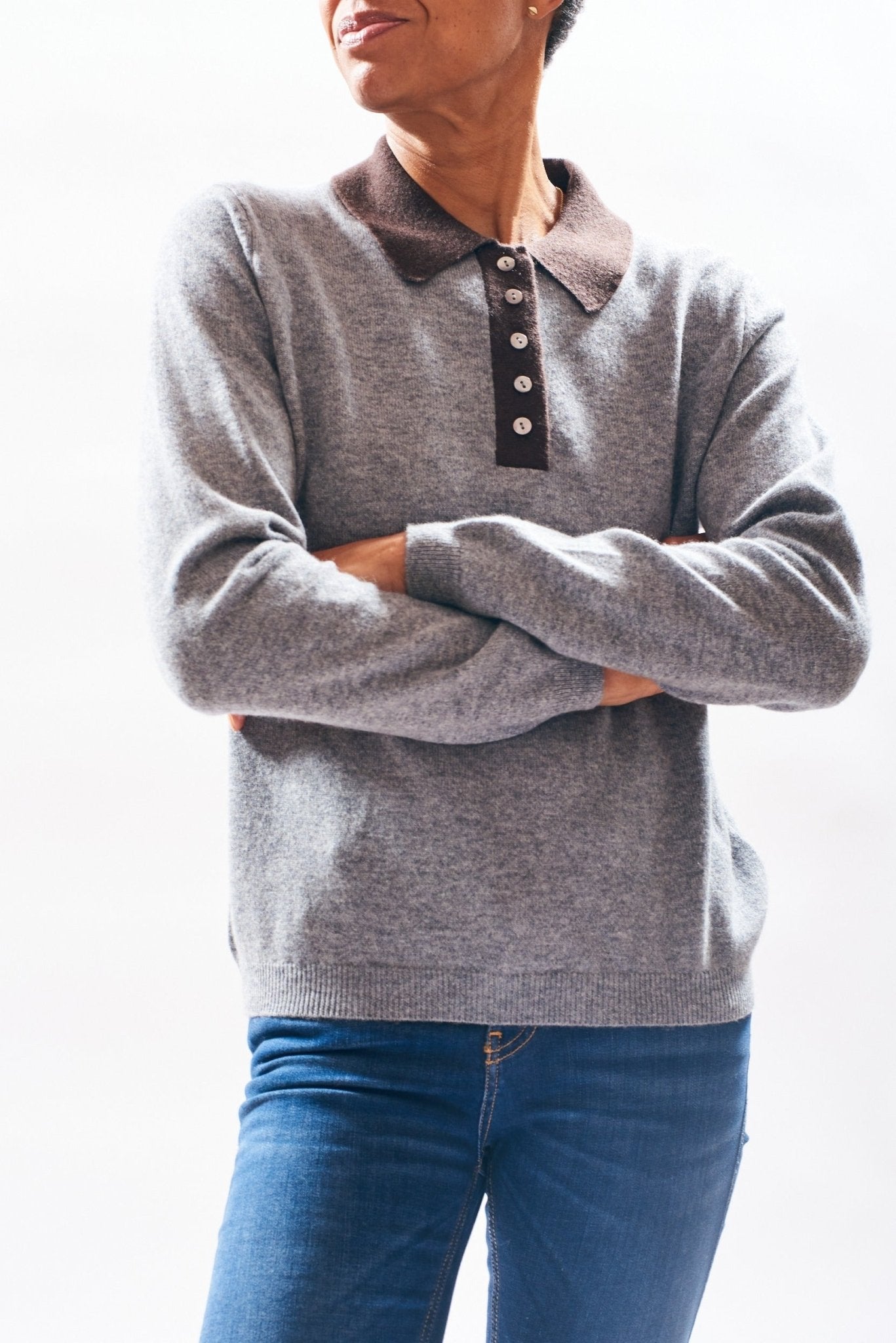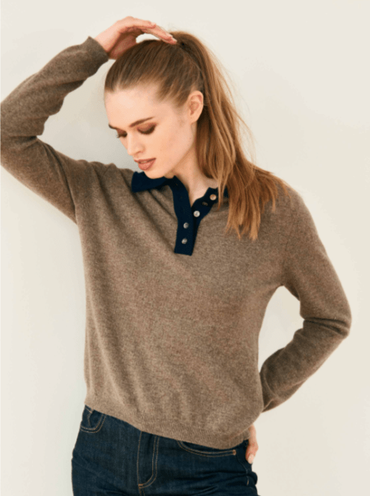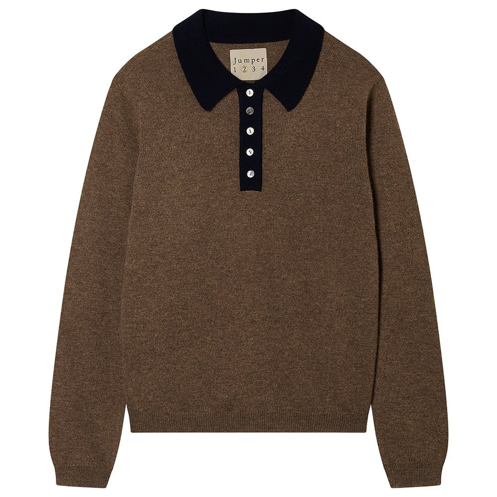 Jumper1234 Cashmere Contrast Polo in Moose and Navy Jumper1234 Cashmere Contrast Polo in Moose and Navy