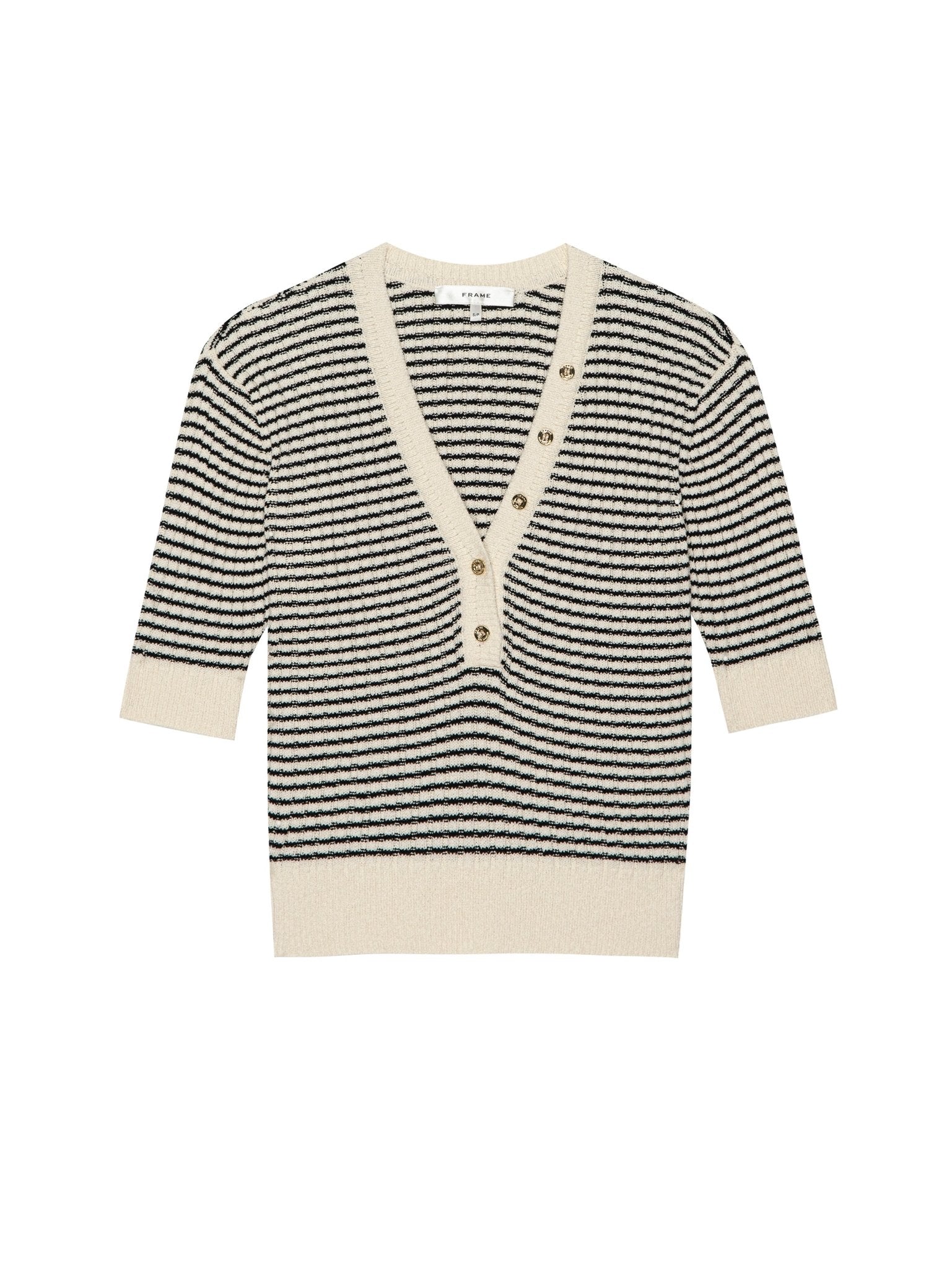 Frame The Stripe V-Neck Sweater in Cream Multi