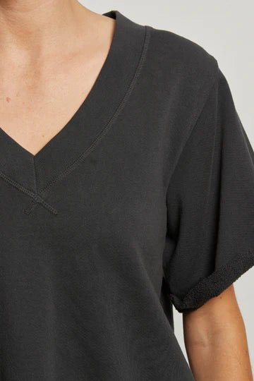 meet the briggs sweatshirt, a fresh spin on a fan favorite. made from soft french terry with a deep v-neck and short sleeves featuring a built-in rolled cuff (yes, it stays put). slightly boxy, banded at the waist, and ready to sub in for your usual tee.