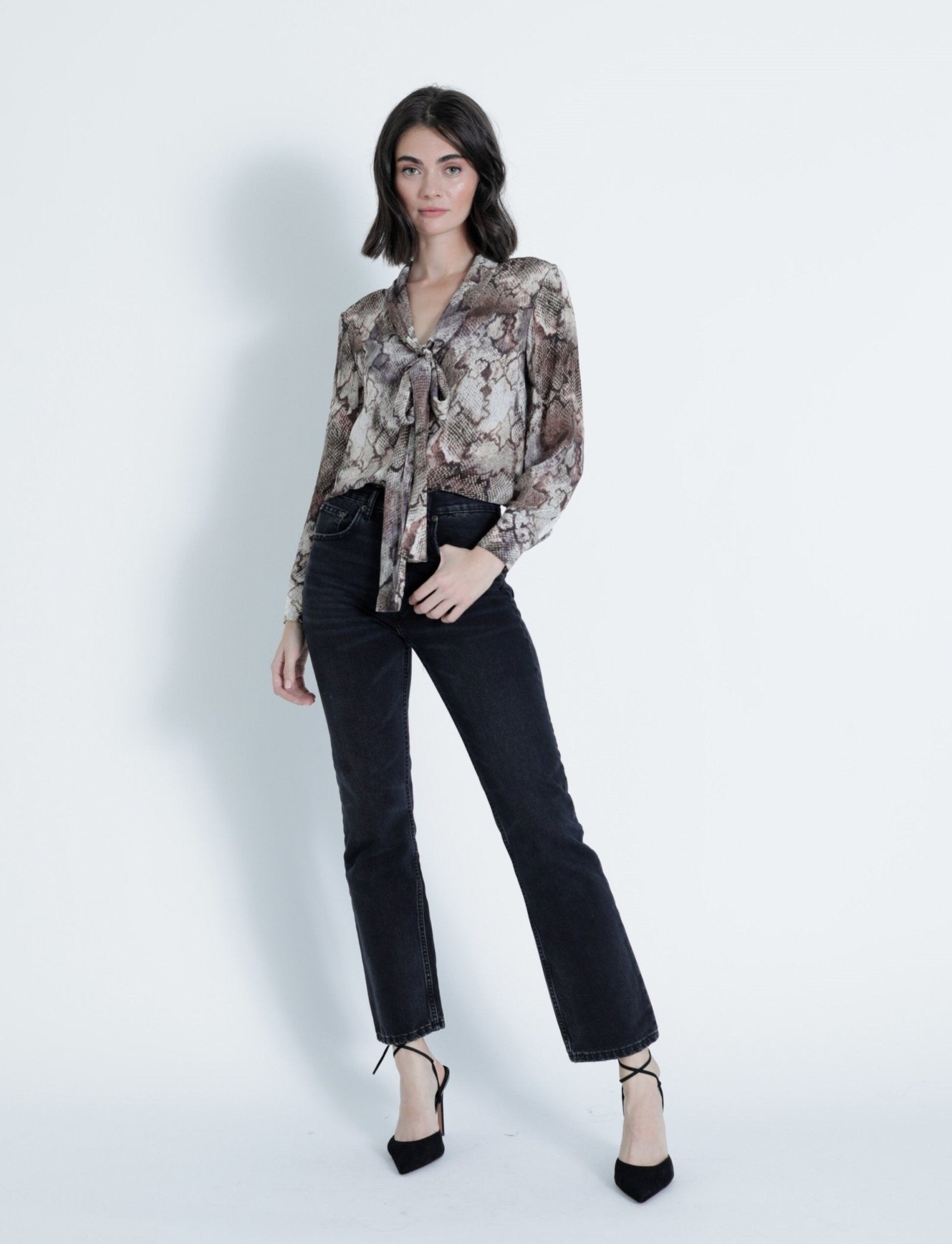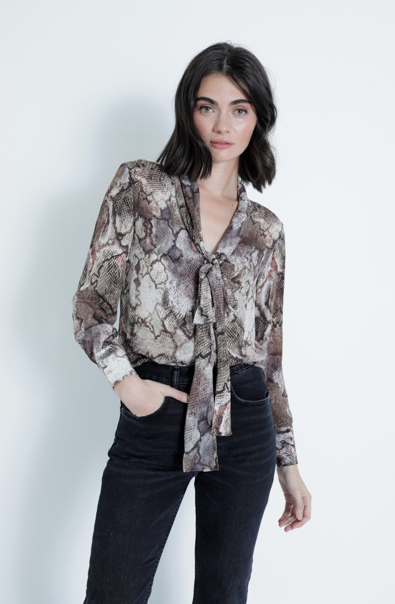 Add a bold touch to your wardrobe with the Karina Grimaldi Samantha Print Top in Natural Snake. This playful design blends chic snake print with a flattering silhouette, perfect for turning heads wherever you go. Lightweight and easy to style, it pairs effortlessly with jeans or skirts for a fun, fierce look. Embrace your wild side with a top that’s as confident as you are!