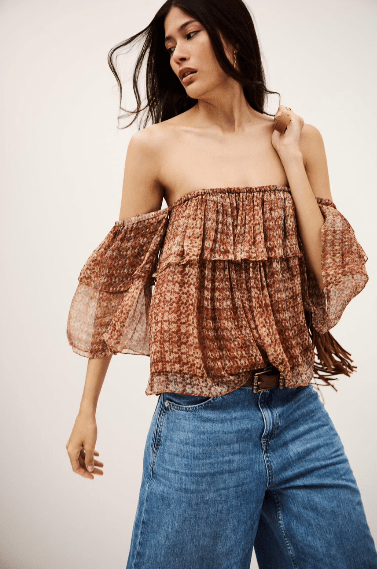 - Removable elasticated sleeves worn over the shoulders or off-the-shoulder style