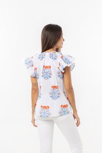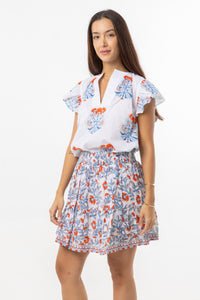 FINAL SALE. The Marion Top is simple yet stunning, crafted from soft cotton in a romantic floral block print. Sweet, playful sleeves and a delicate V-neck add a charming touch.