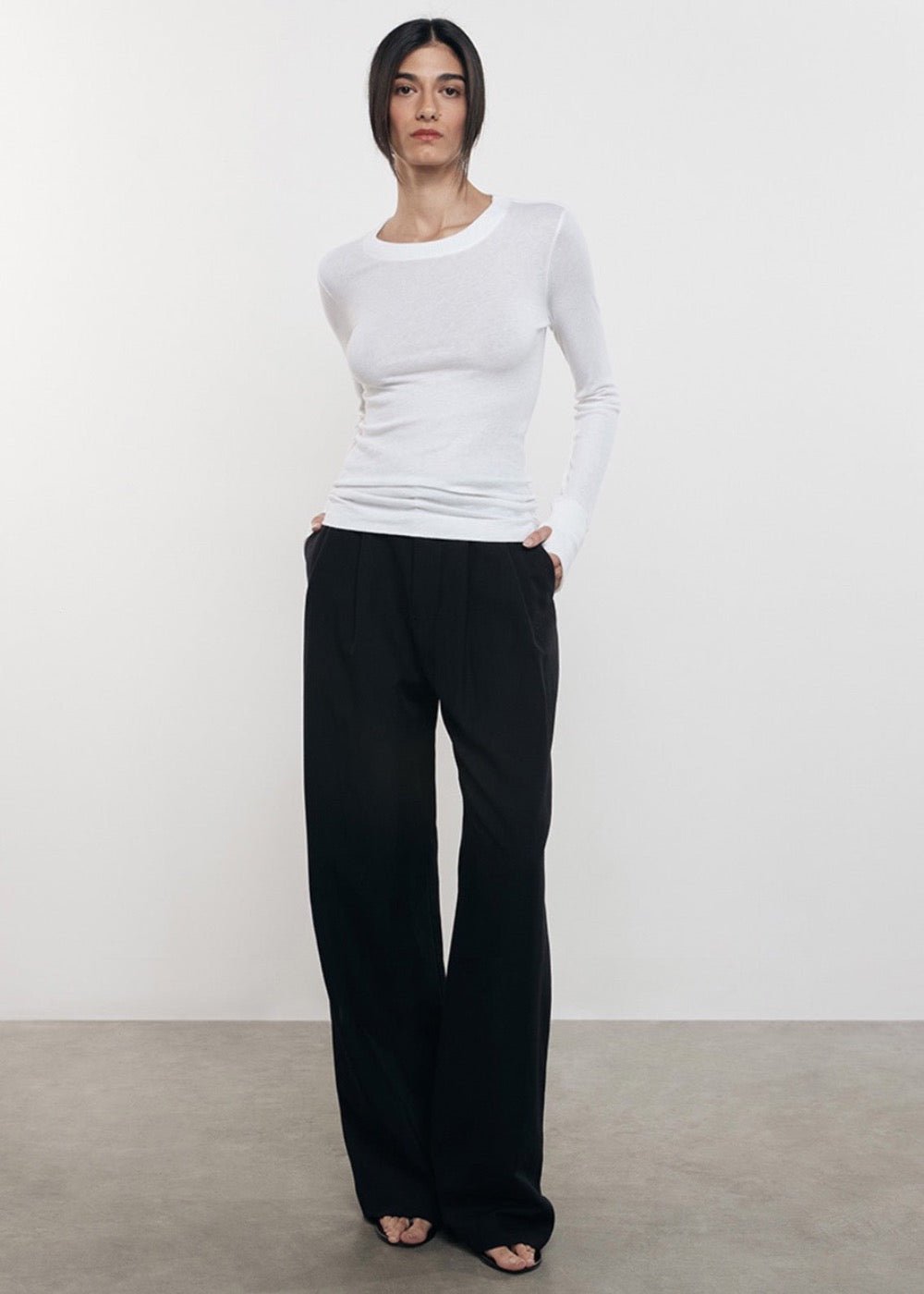Enza Costa Cashmere Easy Cuffed Crew in White