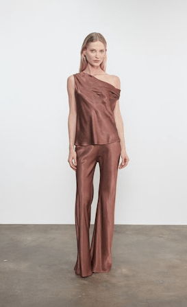 Slip into effortless elegance with this Enza Costa satin bias off-shoulder top in a warm nutmeg hue. The luxurious 100% satin fabric drapes beautifully, while the off-shoulder cut adds a flirty, modern edge to any outfit. Perfect for date nights, brunch with friends, or whenever you want to feel polished and put-together. This versatile piece transitions seamlessly from day to evening, making it a wardrobe essential that works as hard as you do.