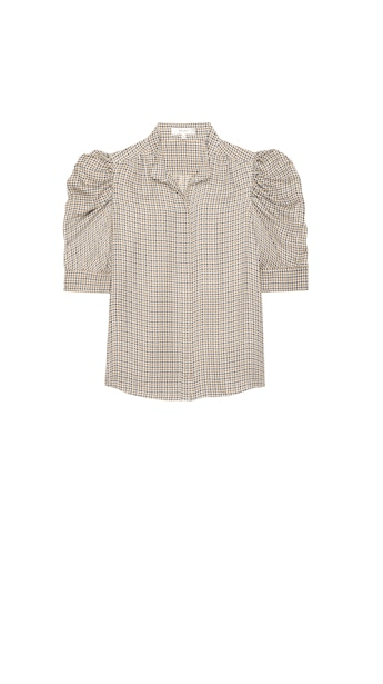 Add a dash of classic charm with the Frame The Gillian Top in Houndstooth. This playful piece pairs timeless pattern with a modern fit, making it perfect for turning heads whether you're at brunch or the office. Embrace effortless style and let your outfit do the talking!
