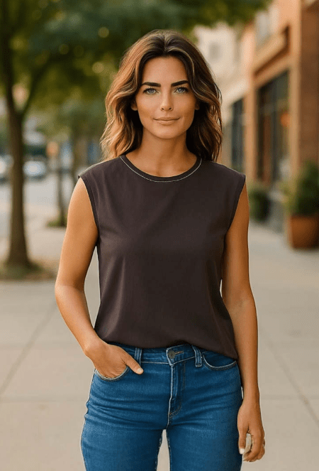 The Go Out Of Your Shell Metal Top by GO SILK is crafted from 100% silk.