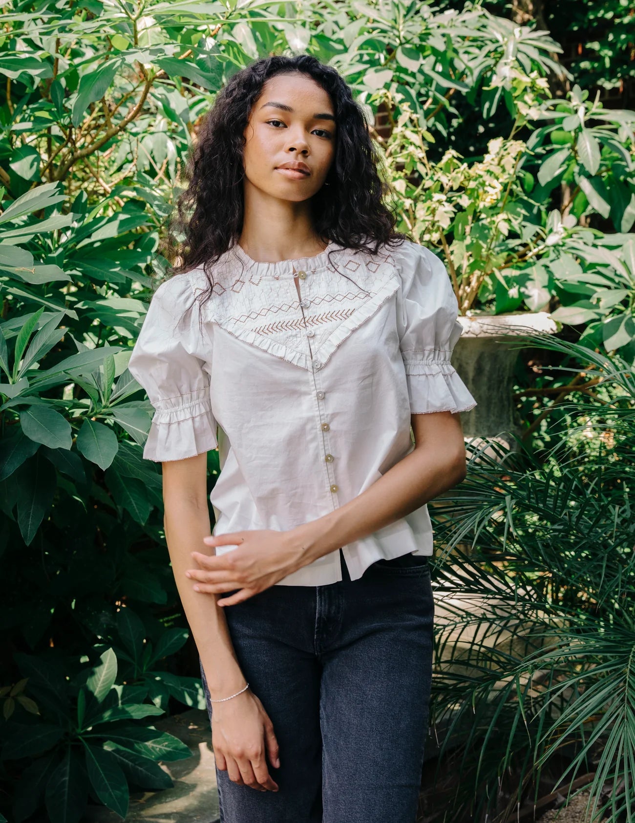 The Sophie Top features decorative embroidery, contrast picot edge finishes — This short sleeve top is perfect for an effortlessly romantic look.