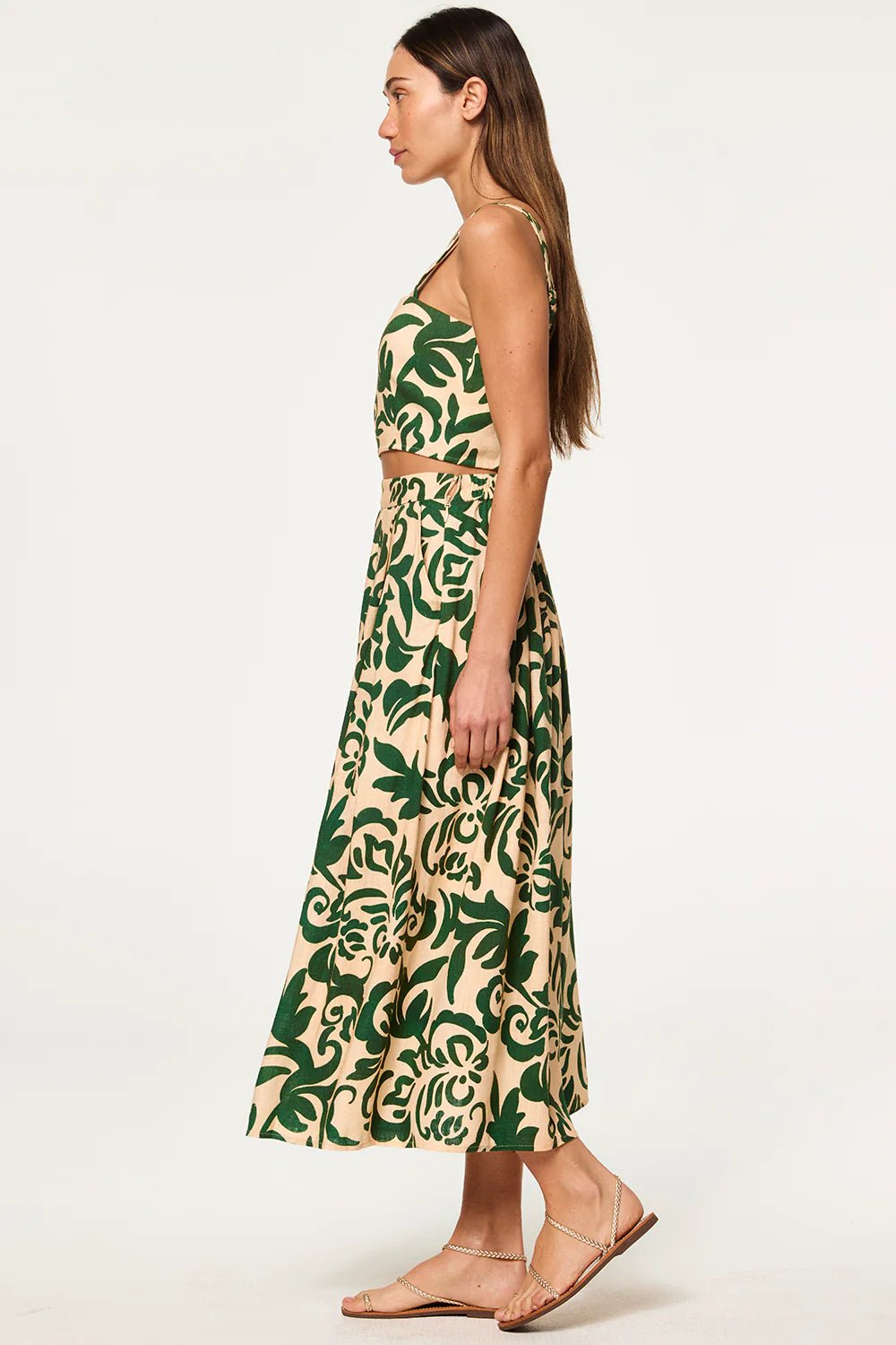 Lois is a sleeveless, fitted crop top that pairs perfectly with the coordinating Aggie skirt. Cut from a Tonal Cactus print linen blend, it features a square neckline and straps with a smocked back and hidden zip closure.