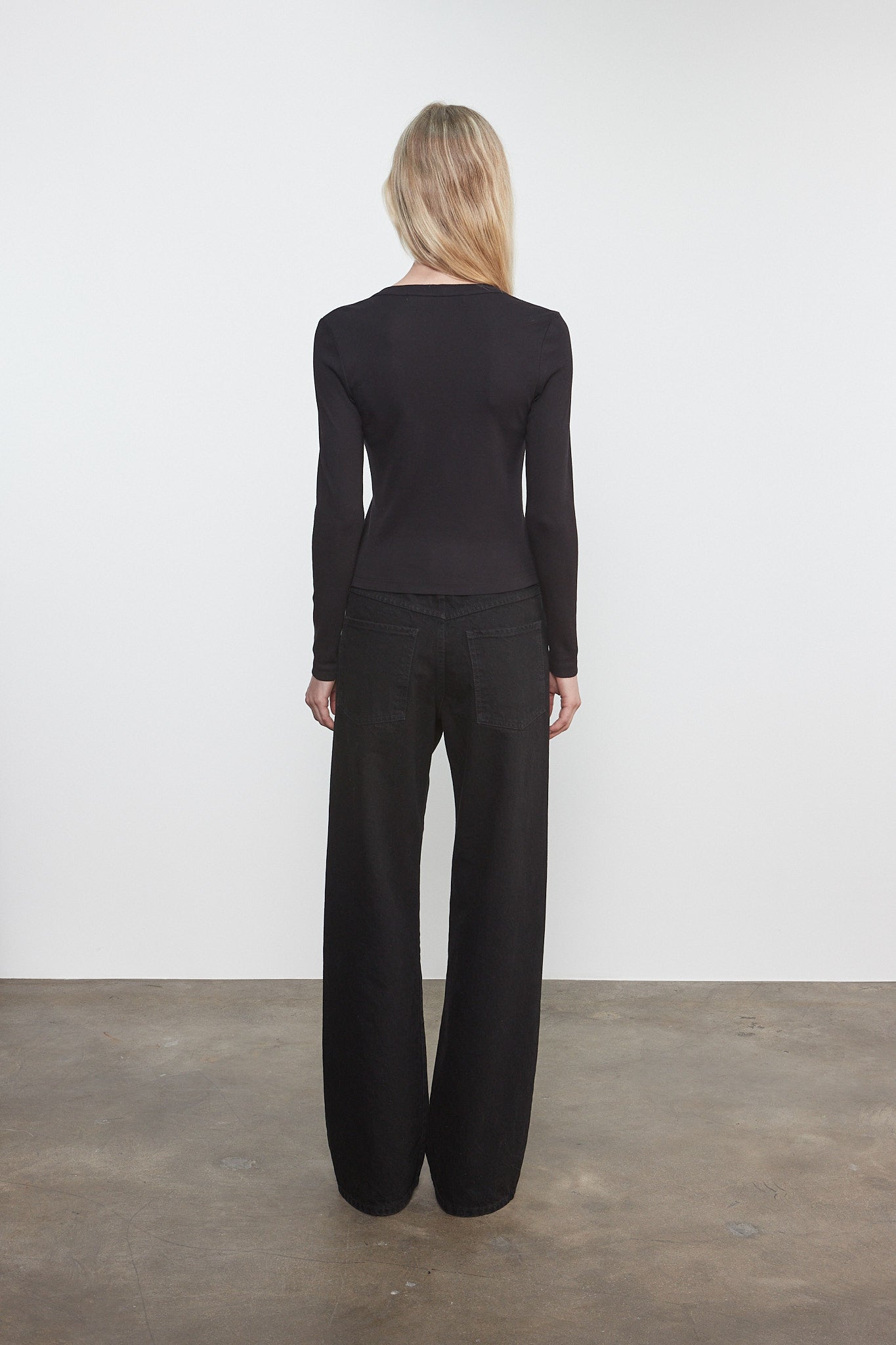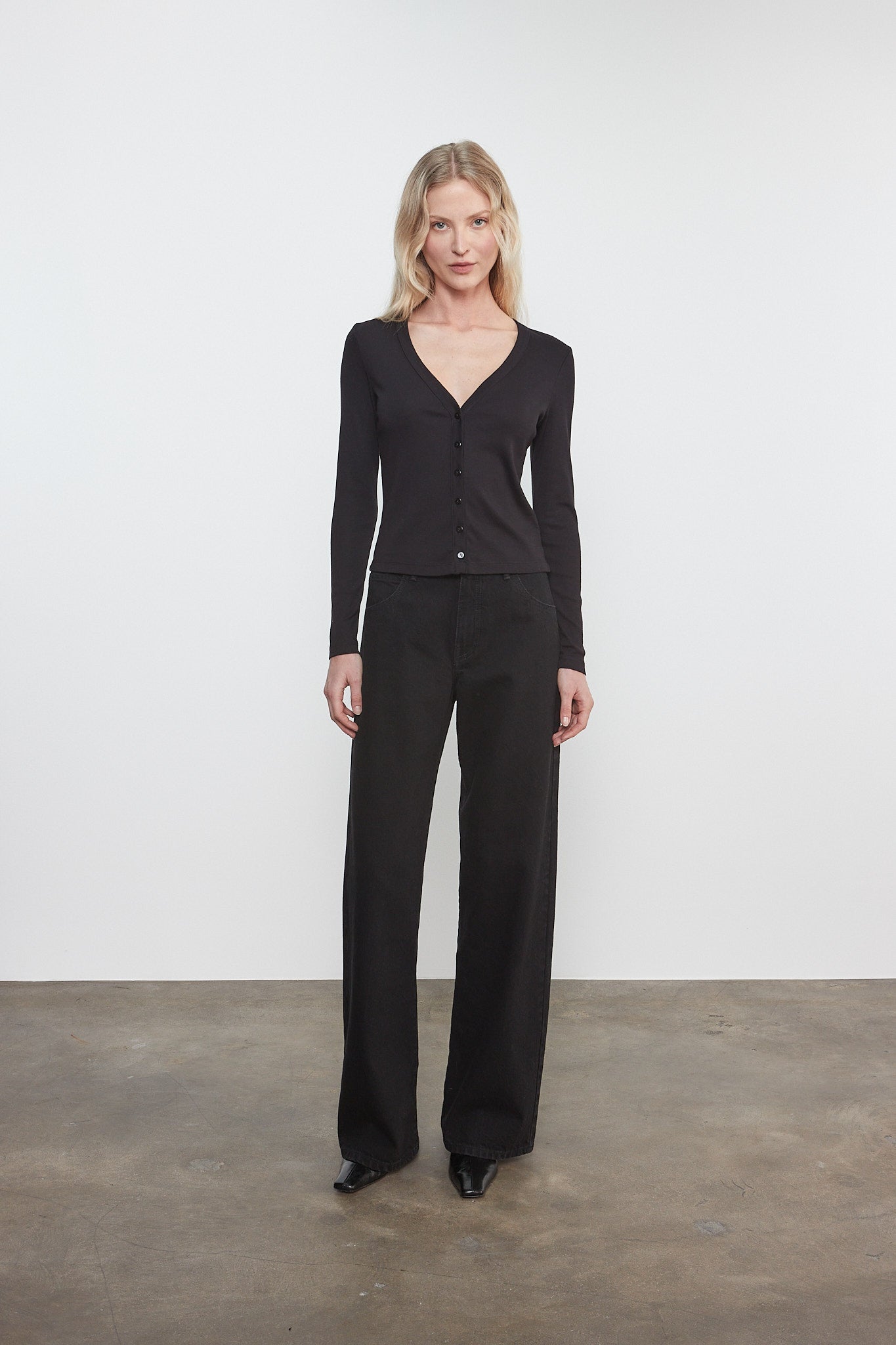 Enza Costa Supima Cotton New Classic V-Neck Cardigan in Black