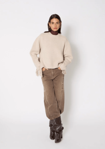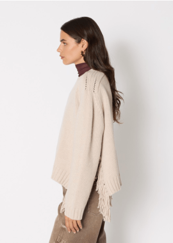 The MYFRINGES sweater combines wool softness with originality through slits at the hem and fringe details. A piece that brings movement and style to your winter looks, ensuring comfort and elegance.